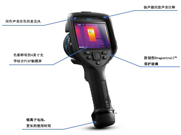激光距離測量 內(nèi)置激光測距儀,有助于快速準確地進行自動對焦,因此您能確保每次測量都可獲得準確的溫度測量值。 智能的AutoCal™鏡頭 FLIR為E85設計了全新的鏡頭,可在熱像儀中自動校準而且能在熱像儀之間共享。 流暢的報告功能 FLIR E85具有可自定義的工作文件夾、可用于添加語音注釋的麥克風和報告生成特性,有助于簡化 您的日常工作。